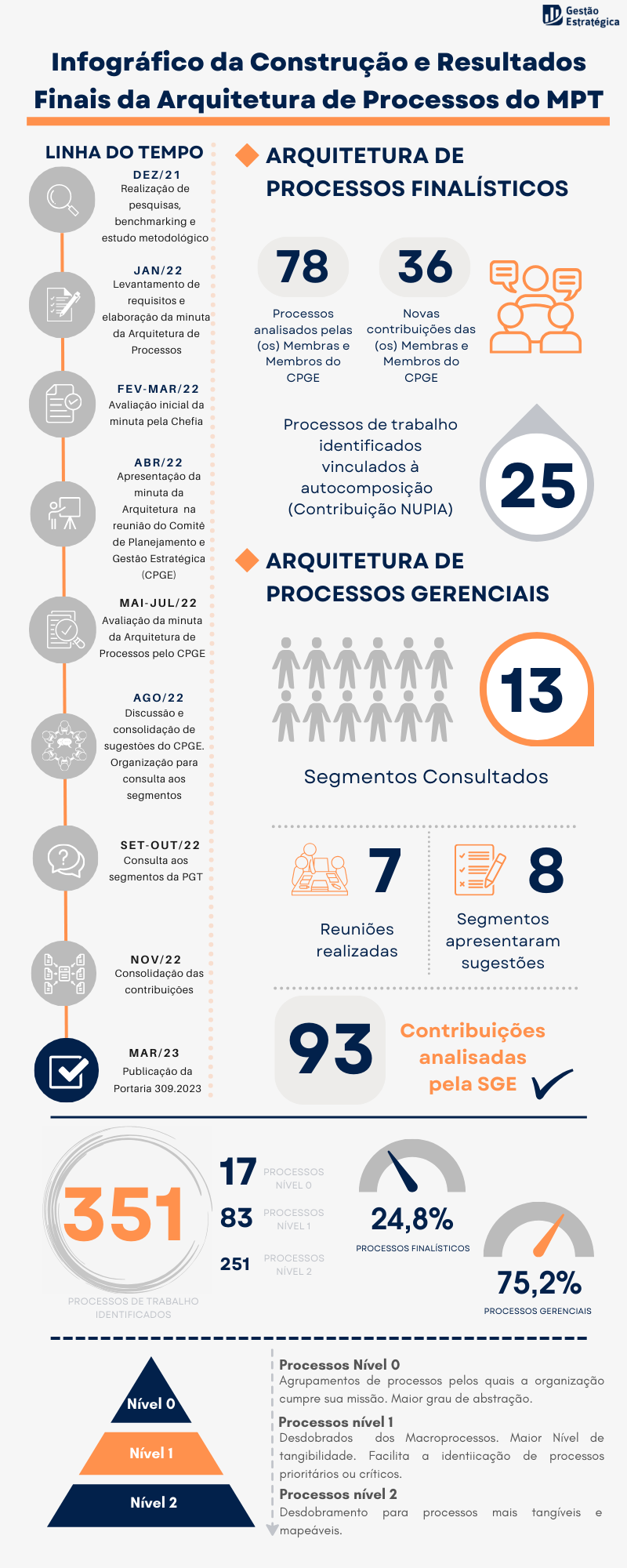 A Arquitetura de Processos do MPT foi estruturada em três níveis de processos, conforme imagem a seguir: